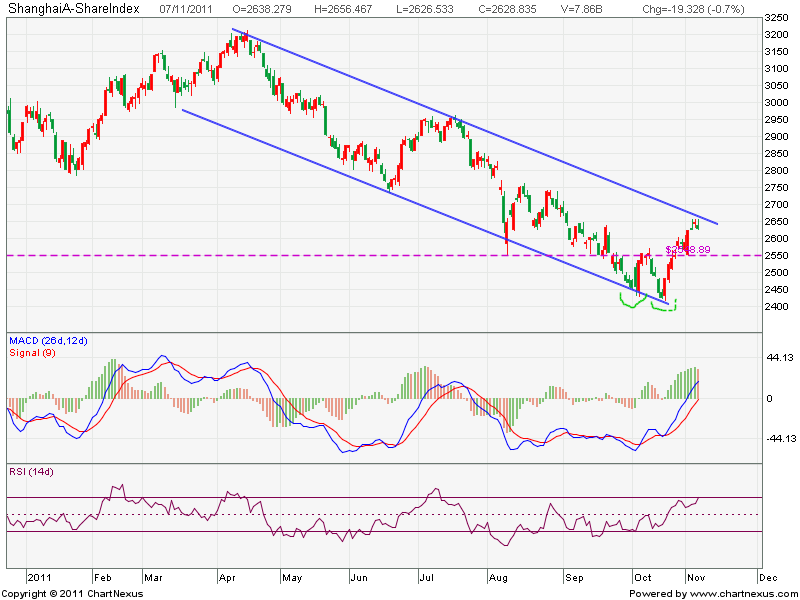 香港股市今日唔上唔落,悶到震~~~ weekend 時跟朋友吹水,問我點睇個市。我覺得歐債問題剛過了個大關 (希臘公投一事幾可肯定不會發生),港股又於10月狂奔了4000點,點都要唞唞氣,好友淡友再部署一下。上星期說的搏1000調整可能在上星期三單日轉向由,跌300幾點倒升300幾點時已經完成,我估個市會在20000點附近徘徊。但配合著阿爺放水的消息,再向上撲的機會應該都幾大。21000是個超級阻力,我覺得如果可以去到21000唔到d就應該先減持。如果恆指真係咁好嘢可以一舉穿21000,就可以立刻 (係立刻!) 再追入,我肯定佢會頭到唔回一口氣飆1000幾百點上去,你都唔使旨意等佢回落來先買 (因為個個都會咁諗)。如果你20800點減持,21200點追番入去,是賺少了400點,但可以買一個保障。