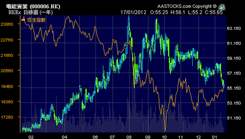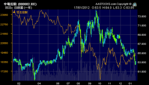 早上爬起身時見到電視講公用股近月的表現。嘩!原來從高位跌了很多。中電 (0002.HK) 9月尾時最高價是 $75.2,昨日收市價是 $63.25,跌了16%;電能 (差d打了「港燈」,0006.HK) 高位在8月的 $64.8,昨日收市價是 $55.45,跌了14.5%。其實兩隻資金避難股過去半年的圖表一早已提醒世人市底可能無大家眼見咁差,又再一次顯示了技術分析的智慧,只是小弟道行未夠領略唔到。你估大戶賣了公用股的資金可以做什麼?如果不是買再安全一點的美債,就是反手投入 capital market (即金