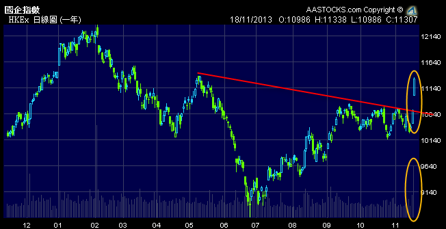 道理上,要等恆指站穩 23500 – 23600 三天才算成功突破,不過以今日的姿態,今日的成交… 你估今日裂口高開300多點老散敢不敢追貨?你估千億成交是老散買起還是大戶買起?再看看這兩天國企的走勢,好似想食人咁!!!現在才是故事的開始!如果明天大市回調百多二百點,就已經好應該買入你的心水股!