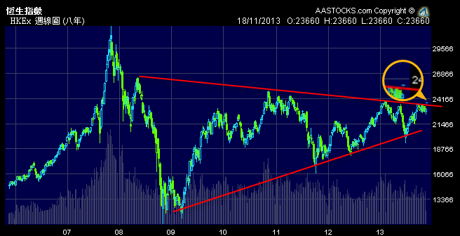 5) 最最最重要的是 — 今日升穿了2008年至今行了超過5年的超大形三角形走勢,真是唔講得笑!!