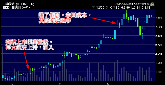 近年尾多隻新股齊齊上市,半新股的選擇多得很。它們一上市時,其實我是無圖可炒的,不過今年的半新股都喜歡低開,可能是因為散戶們的熱情不足,往往一上市就賣了先算!但這樣我就可以等一些有實力的 (或者有炒味的) 走低後再突破上市以來高位時追入。這時候大戶收好貨之餘又無蟹貨,勁好炒!
