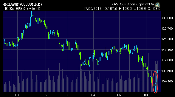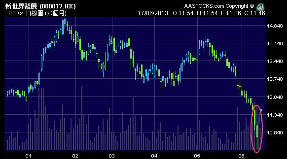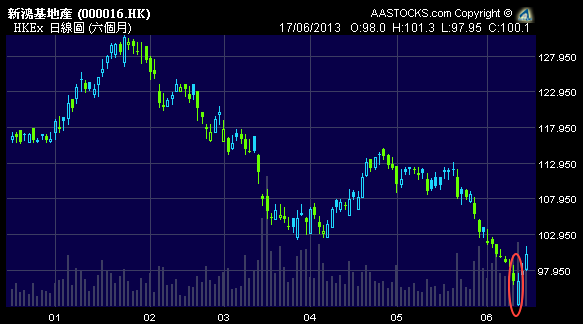 不過,及至5月22日,伯南克的言論令市場開始憂慮美國聯儲局或減少買債,環球股市回落,其後伯南克表明退市時間,美國債息抽升,加上內地經濟疲弱,以及鬧錢荒,拖累港股由23500點水平急挫至19500點水平,直至本周初人行強調流動性充足,並已向部分銀行「放水」,加上月結因素,淡友收手,港股回升至20800點水平。