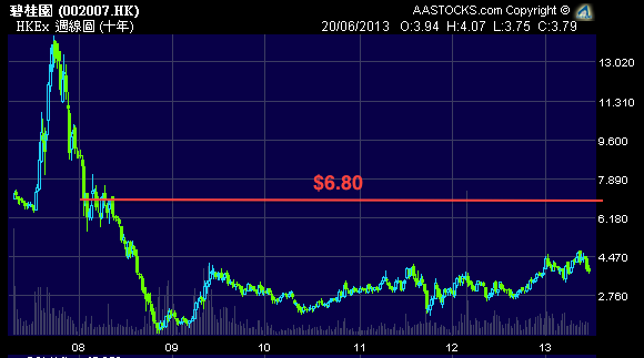 隻碧桂園在2008年後都沒有到過$6.8了...