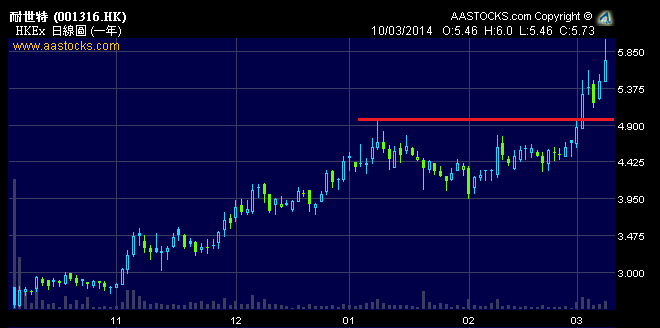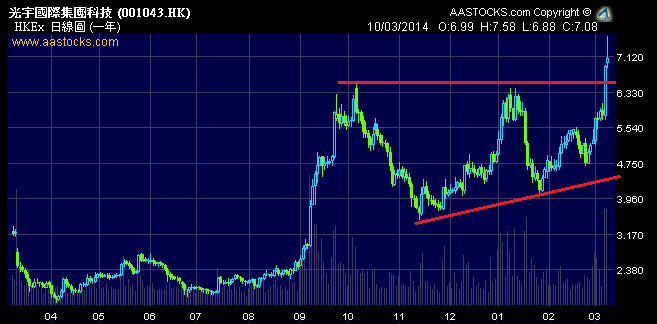 反而港隊的一班代表,比亞迪貴得來都還只是歷史高位的一半多少少,等回吐可以諗諗。其他的相關電池股,泰坦能源技術 (2188.HK) 和中聚電池 (0729.HK) 是炒股,但 high risk high return;光宇國際 (1043.HK) 已突破了 $6.4 的雙頂高位,小弟亦已趁機追入,量度目標是$9!耐世特 (1316.HK) 突破 $5 後扶搖直上,新股無蟹貨,可以升得更高更遠。