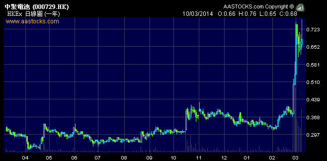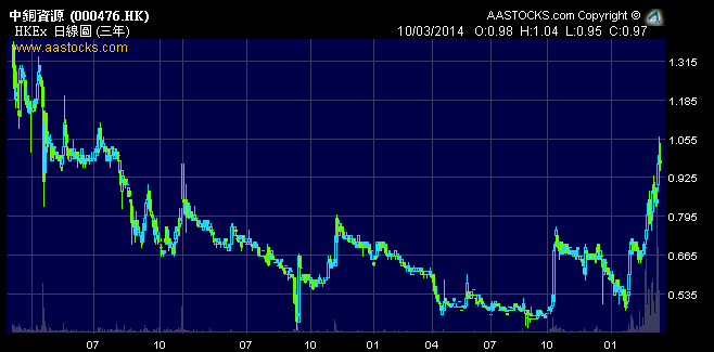 還有一隻不知是龍是蟲的港版電動車股:中銅資源 (0476.HK)。見個名就知道是半途出家的電動車股,它剛在香港中標了「首個本港品牌電動巴士動力系統」,又入股環保電動汽車企業。我之前看圖見突破買了少少,現在即管揸一揸,等一等。