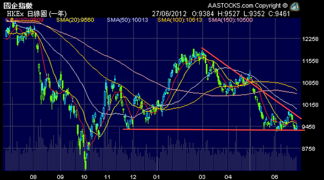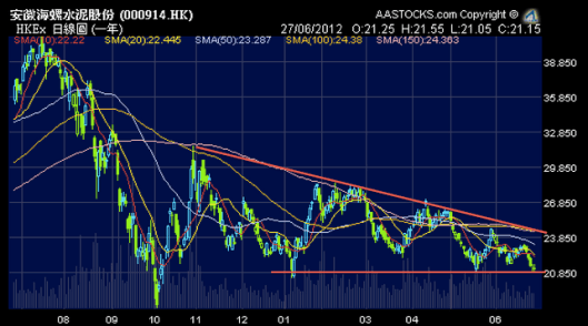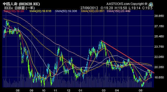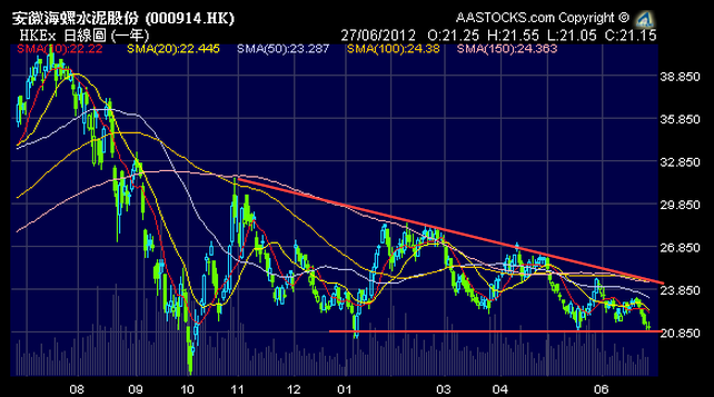 之前一直在留意的3隻恆指弱勢股齊齊破底。雖然今日恆指先跌後倒升,但望著這3子堅守的鐵底一次過 triple hit 全破,小弟真的無眼睇… 唯一可幸的是他們低位見陀螺或小陽燭,希望這只是假跌穿。