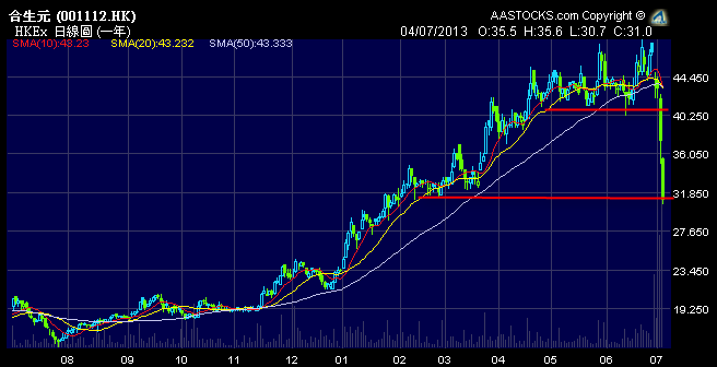 嘗試接從高位掉下來的刀從來都不是一個聰明的做法,不過嘗試撈底卻是我們一介散戶的劣根性!圖表上看,$32.5 是二、三月時的低位支持位,可以試一試它能否一守!我反正試了!