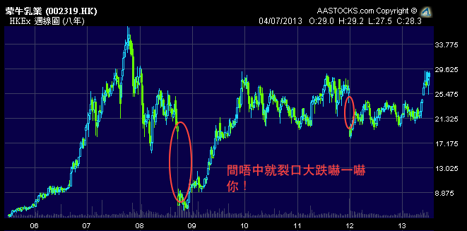 隻蒙牛近年來間唔中就裂口大跌嚇一嚇你!