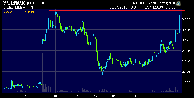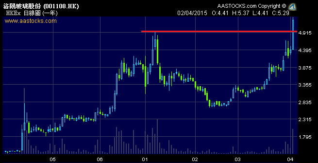 由於小弟估市的記錄強差人意,都是補一補飛寫吓股票。上個星期股仔們和雀亂飛了一大堆,例如再上一篇提過的高陽科技 (0818.HK) 和金碟 (0268.HK) 全部破位上,已經去到一年前高位阻力;鐵路基建三寶 (0390.HK,1186.HK,1800.HK) 全部黐晒孖筋。我上上星期五 (27號) 買了隻 1800.HK call,搏破頂,上星期一 (30號) 正股可以單日升近20%!我見狀仲唔食糊咩!到復活節假期前已經升多一大蚊,真係吹脹!