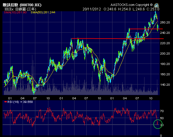 如果 AAPL 是美國 (其實是全球) 的 IT 股王,那麼香港的 IT 股王唔駛問當然是騰訊 (0700.HK)!無獨有偶,700 公怖第3季業績後又是被一下子洗下來。又問你一句:你覺得700上$300的機會大嗎?我就覺得這只是遲早的事!